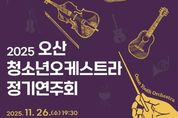 [와이뉴스] 오산문화재단이 주최하고 오산시가 후원하는 ‘2025 오산 청소년 오케스트라 정기연주회’가 오는 11월 26일부터 27일까지 오산문화예술회관 대공연장에서 이틀간 개최된다. 공연은 전석 무료로 시민 누구나 관람할 수 있다. 오산문화재단은 '기타 오케스트라'와 '관현악 오케스트라' 등 두 개의 청소년 오케스트라를 운영하고 있으며, 11월 26일에는 '기타 오케스트라', 11월 27일은 '관현악 오케스트라' 순으로 진행된다. 26일 '기타 오케스트라' 공연에서는 대표 기타 연주곡을 비롯해 대중가요, 크리스마스 캐럴 등 친숙한 레퍼토리가 합주와 앙상블 형태로 선보여질 예정이다. 이어 27일 '관현악 오케스트라'는 ‘경기병서곡’, ‘오페라의 유령’ 등 다양한 장르의 곡을 연주하며 풍성한 클래식 무대를 꾸민다. 오산문화재단 관계자는 “이번 정기연주회는 단원들이 1년간 쌓아온 실력을 선보이는 뜻깊은 무대”라며 “학부모와 시민들이 함께 문화예술을 향유하고 청소년들의 성장을 응원하는 자리가 되길 바란다”고 밝혔다. 오산 청소년 오케스트라는 매년 3월부터 관내 청소년을 대상으로 악기 및 합주 교육을 진행하