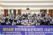 [와이뉴스] 용인특례시는 10일 시청 컨벤션홀에서 민족통일 용인특례시협의회 주관으로 ‘민족통일 용인특례시대회와 제56회 한민족통일문화제전 시상식’이 열렸다고 밝혔다. 이날 행사는 한반도의 평화와 통일을 주제로 한 글짓기·웹툰·포스터·사진 공모전의 입상작을 시상하고, 유공회원에게 표창을 수여하고자 마련됐다. 민족통일 용인특례시협의회는 1981년 창립한 단체로 매년 태극기 나눔을 비롯해 지역사회 통일운동 의식 제고 등을 위한 다양한 활동을 벌이고 있다. 이날 협의회는 홍보자료 시청, 통일 관련 동영상과 남북 언어 차이에 대한 학습자료를 시청하고 간단한 통일 퀴즈대회를 거쳐 우수 작품 3개를 낭독했다. 이어진 시상식에서는 용인특례시장상 3명 등 총 36명이 수상의 영예를 안았다. 유한종 민족통일 용인특례시협의회장은 “민족의 염원인 한반도 평화통일을 위해 어려운 여건 속에서도 적극 지원해 주시는 이상일 시장님께 감사드린다”며 “대한민국 통일의 그 날이 올 때까지 협의회 회원의 뜻을 한데 모아 더욱 적극 활동하겠다”고 했다. 이상일 시장은 “대한민국이 한국전쟁의 비극을 이겨내고, 선