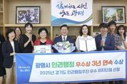 [와이뉴스] 광명시가 경기도가 선정하는 인권 행정추진 우수 기관으로 3년 연속 선정되며 인권 선도 도시로 확고히 자리매김했다. 시는 지난 9월 30일 경기도청 다산홀에서 열린 ‘2025년 경기인권포럼’에서 경기도 인권 행정추진 우수 자치단체 경기도지사 표창을 받았다. 경기도는 31개 시군을 대상으로 인권행정 제도와 정책 추진 성과를 종합 평가해 5개 우수 자치단체를 선정했으며, 광명시는 평가 제도가 도입된 2023년부터 올해까지 매년 수상하는 성과를 거뒀다. 이번 수상은 ▲인권행정 제도 구축(인권조례제정, 인권위원회 구성 및 운영, 인권교육 실시 등), ▲인권정책 수립(인권기본계획 수립 및 연도별 시행계획 수립, 인권실태조사 및 인권영향평가, 인권문화행사 등) ▲지역사회 인권증진 활동 ▲시민 인권 보장과 존중 문화 확산 등 전반적 성과를 전문가들로부터 인정받은 결과다. 광명시는 2012년 지방자치단체 최초로 ‘광명시민인권센터’를 개소하고, ‘인권보장 및 증진 5개년 기본계획’ 수립하는 등 인권 친화적 행정의 기틀을 마련해 왔다. 특히 인권기본계획에 재개발·재건축이 많은 도시 특성을 반영