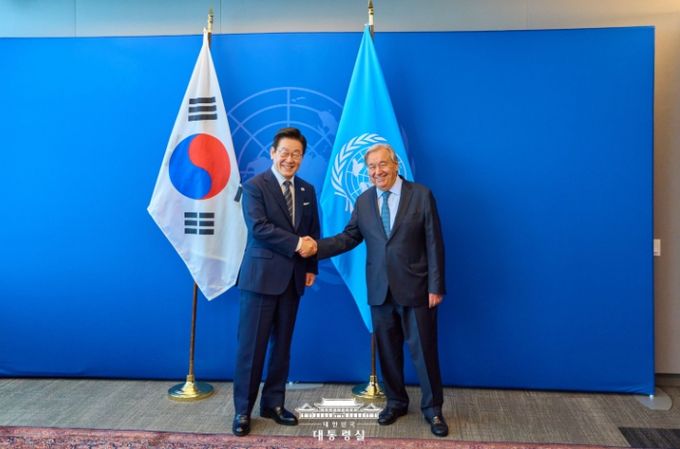먼저, 이 대통령은 23일(현지시간) 구테레쉬 사무총장을 만나 한반도 평화를 위한 우리 측 구상을 설명하며 유엔의 적극적인 지원을 당부했다. 구테레쉬 사무총장과는 지난 6월 G7(주요7개국) 정상회의에서 환담을 나눈 이후 두 번째 만남이다.