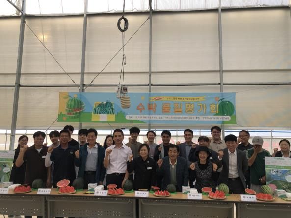 이번 평가회에는 수박 재배 농업인, 연구 회원, 관계 공무원 등 20여 명이 참석했으며, 블랙비, 골든스위트, 지셀라, 블랙루비 등 11개 다양한 품종이 소개됐다.