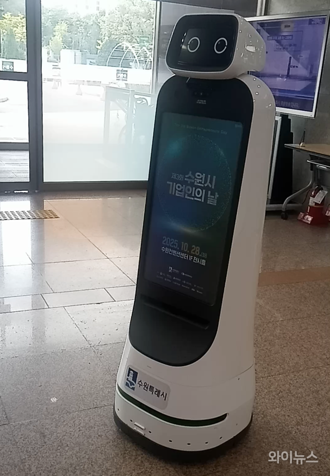 [와이뉴스] 수원시청 본관 1층 인공지능 민원 안내 로봇이 운영되고 있다.