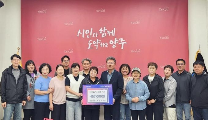 [와이뉴스] 양주시 회천1동 주민자치회(회장 최태옥)가 최근 어려운 이웃을 돕기 위해 벼룩시장 운영 수익금 전액인 45만7천 원을 회천1동 행정복지센터에 기부했다.