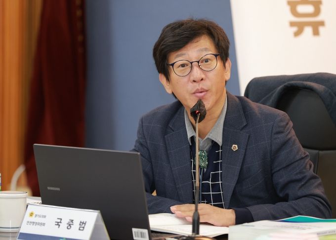 [와이뉴스] 경기도의회 안전행정위원회 국중범 의원(더불어민주당, 성남4)은 7일 시흥소방서에서 실시된 2025년 행정사무감사에서 소방대원의 근무복 세탁 지원과 터널 화재 대응체계 강화 필요성을 집중적으로 제기했다.