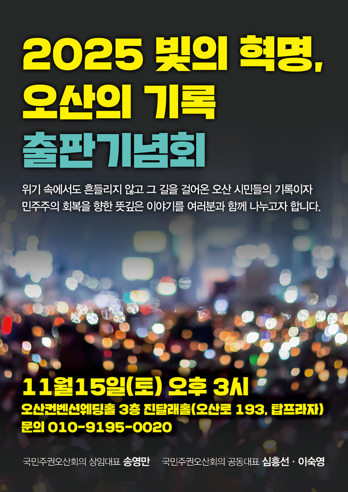 국민주권오산회의에 따르면, 이 출판기념회는 12·3 계엄 이전부터 이어져 온 오산 시민들의 민주주의 실천 기록을 공유하는 자리를 마련했다.