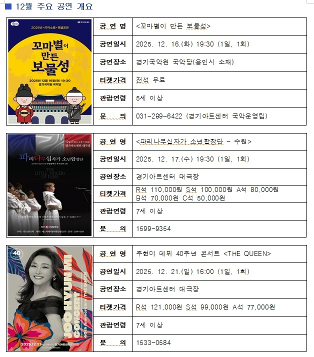 경기아트센터 관계자는 “고품격 클래식과 대중음악, 온 가족이 즐길 수 있는 매직 쇼, 청년예술인들의 신선한 무대 등 많은 분들이 기대하시는 공연들을 준비했다. 앞으로도 도민들의 일상에 더 많은 즐거움을 전하도록 최선을 다하겠다”라고 전했다.