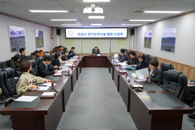 간담회에는 안성시의회 안정열 의장 외 의원들과 (사)한국노인장기요양기관협회 안성지회 관계자(요양시설 원장 등), 국민건강보험공단 안성지사장, 안성시 노인돌봄과장 등이 참석해 장기요양 현장의 주요 현안과 제도 개선 과제를 논의했다.