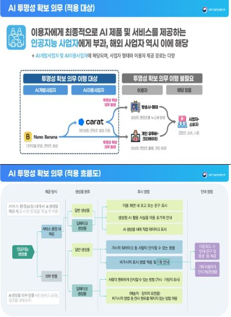 안내 지침(가이드라인)은 투명성 확보 의무를 이행해야 하는 주체를 이용자에게 인공지능 제품 및 서비스를 직접 제공하는 ‘인공지능 사업자’로 명확히 규정했다. 여기에는 국내 이용자를 대상으로 인공지능 제품·서비스를 제공하는 해외 사업자도 포함된다.