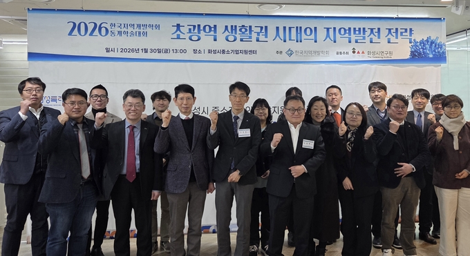 [와이뉴스] 화성시연구원이 한국지역개발학회와 30일 ‘초광역 생활권 시대의 지역발전 전략’을 주제로 2026년 동계학술대회를 공동 개최했다. 이는 2025년 12월 9일 체결한 업무협약(MOU)에 따른 첫 공동 성과로 광역 교통망 확충 등으로 초광역 생활권이 형성되는 가운데, 지역 공간·경제 변화와 행정구역을 넘어선 협력·지속가능 발전 전략을 모색하기 위해 마련됐다.
