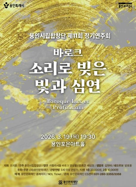[와이뉴스] 용인문화재단은 오는 3월 19일 오후 7시 30분, 포은아트홀에서 용인시립합창단 제11회 정기연주회 '바로크 – 소리로 빚은 빛과 심연'을 개최한다.
