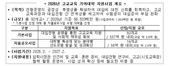 [와이뉴스] 교육부은 2월 24일, ‘2026년 고교교육 기여대학 지원사업 기본계획’을 발표한다.