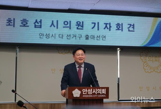 [와이뉴스] 최호섭 안성시의원(국힘/가선거구)이 3일 오후 시의회 3층 소통회의실에서 기자회견을 열고 오는 지방선거에서 다선거구에 출마한다고 밝혔다.
