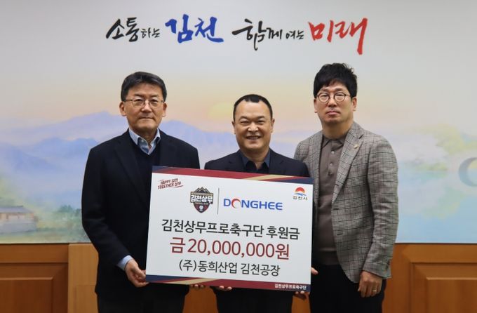 동희산업은 김천시 어모면 산업단지에 위치한 김천공장을 인연으로 지난 2022년부터 김천상무 후원을 시작했다. 이어 올해까지 5년 연속 후원을 이어가며 지역 스포츠 발전과 구단 운영에 힘을 보태고 있다.
