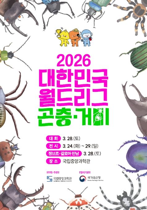 [와이뉴스] 과학기술정보통신부 국립중앙과학관은 3월 24일부터 29일까지'2026 대한민국 세계 연맹전(월드 리그) 곤충·거미' 행사를 개최한다. 이번 행사는 곤충과 거미의 생태적 가치와 매력을 직접 체험할 수 있도록 마련된 참여형 행사로 전시와 경진대회, 체험 교육, 박람회 전시관(부스) 등이 함께 운영된다.
