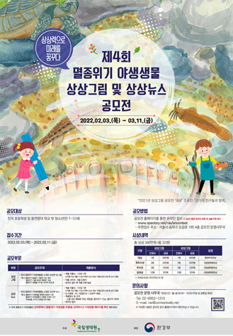 [와이뉴스] 환경부 산하 국립생태원은 '제4회 멸종위기 야생생물 상상그림 및 상상뉴스 공모전'을 개최하고 2월 3일부터 3월 11일까지 작품을 접수한다.