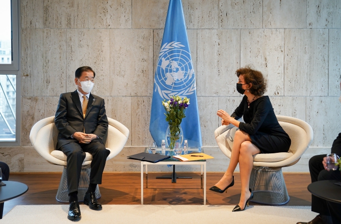 [와이뉴스] 정의용 외교부 장관은 2.22일 파리에서 오드레 아줄레(Audrey Azoulay) 유네스코 사무총장을 면담하고, 한-유네스코 협력 강화 방안에 대해 논의했다.
