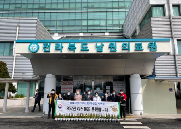 이번 행사에는 남원시 코로나19 선별진료소 및 의료기관 의료진 600여명을 대상으로 실내에서 손쉽게 키울 수 있고 공기정화 효과가 탁월한 공기정화식물(나무)을 전달하였다.