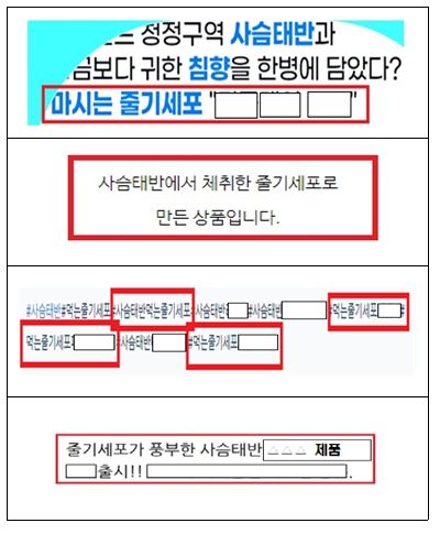 이번 점검은 식품 등에 ‘사슴태반’ 원료를 사용했음에도 ‘사슴태반 줄기세포’를 사용했다고 거짓으로 광고를 하거나, 질병의 예방‧치료에 효능‧효과가 있는 것 등으로 부당광고하는 사례가 있어 소비자 피해를 예방하기 위해 실시했다.