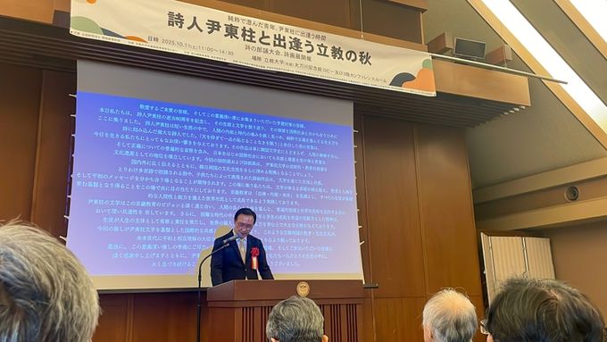 [와이뉴스] 임태희 경기도교육감이 11일 일본 도쿄 릿쿄대학에서 열린 ‘윤동주 시인 서거 80주년 기념 시낭송 대회 및 기념비 제막식’에 참석했다.