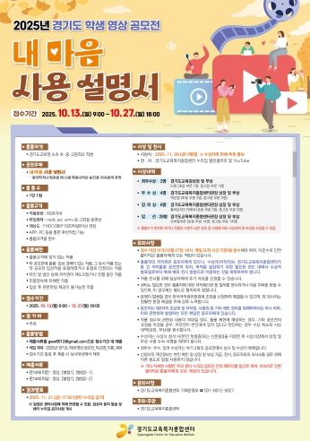 [와이뉴스] 경기도교육복지종합센터가 경기도교육청 소속 초 중 고등학교 학생들을 대상으로 ‘2025년 경기도 학생 영상 공모전’을 개최한다.