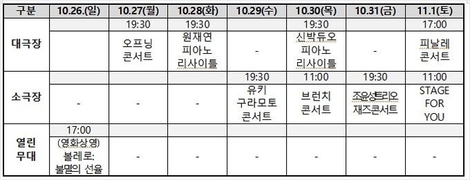 - 기간/장소 : 2025. 10. 26.(일) ~ 11. 1.(토) / 경기아트센터 대·소극장, 열린무대