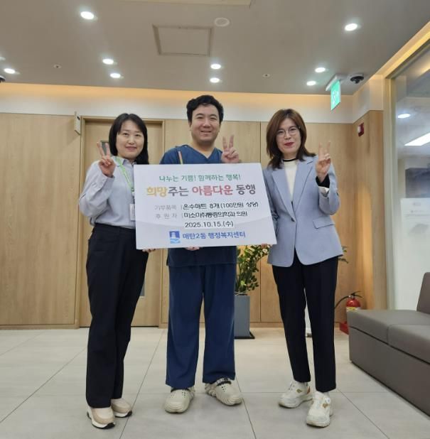 [와이뉴스] 지난 15일, 수원시 영통구 소재 미소마취통증의학과의원은 관내 저소득 어르신들이 따뜻한 겨울을 보낼 수 있도록 매탄2동 행정복지센터에 100만원 상당의 온수매트 8세트를 기부했다.