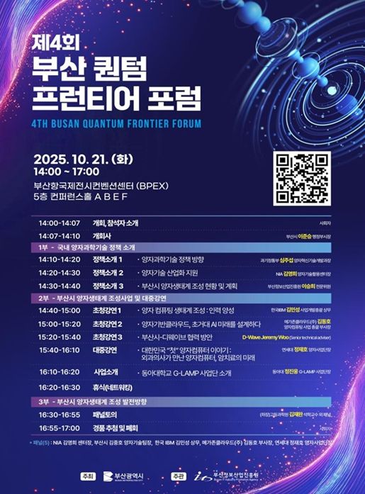 [와이뉴스] 부산시는 오는 10월 21일 오후 2시 부산항국제전시컨벤션센터 컨퍼런스홀에서 '제4회 부산시 퀀텀 프런티어 포럼'을 개최한다고 밝혔다.