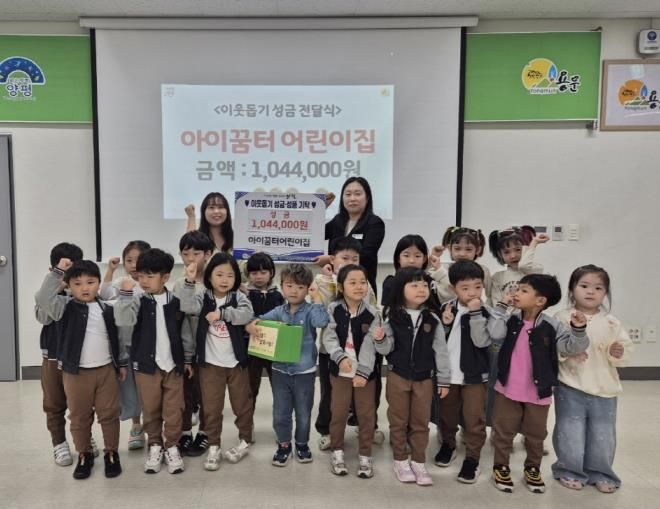 [와이뉴스] 양평군 용문면은 지난 20일 용문면 소재 아이꿈터 어린이집이 주최한 ‘소소한 기쁨, 특별한 만남, 행복 나눔 작은 장터’ 바자회를 통해 마련된 수익금 1,044,000원을 용문면에 기탁했다고 밝혔다.