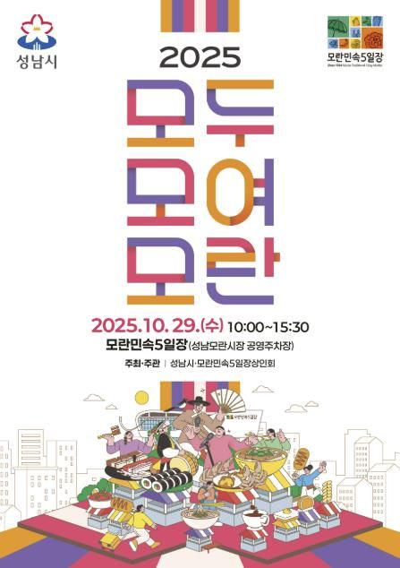 [와이뉴스] 성남시는 오는 10월 29일 오전 10시부터 오후 3시 30분까지 모란민속5일장(중원구 둔촌대로 68)에서 ‘2025 모두모여모란’ 축제를 연다.