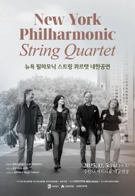 [와이뉴스] 수원문화재단은 오는 12월 5일 금요일 오후 7시 30분, 수원SK아트리움 대공연장에서 ‘뉴욕 필하모닉 스트링 콰르텟 내한공연’을 개최한다.