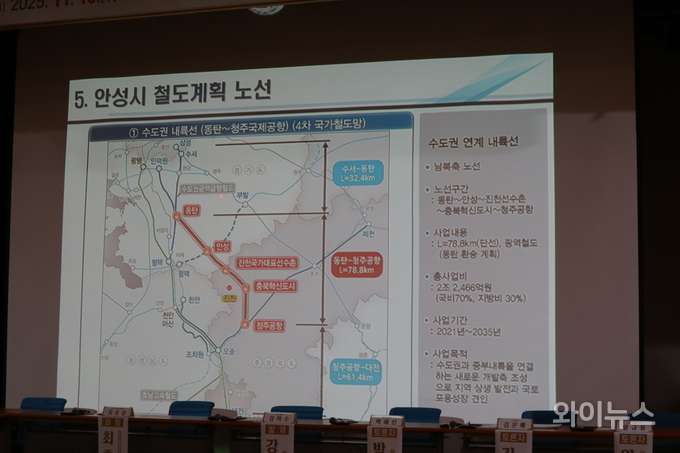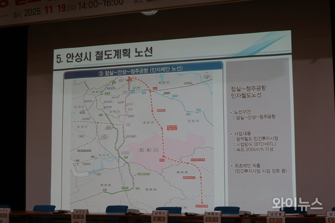 이어 “동탄-진천-청주공항 노선은 진천군에서 발의해 현재 국토교통부에서 검토 중인 노선이다. 안성시 제안이 아니다. 세 번째 잠실-진천-청주공항 노선도 2024년 11월 진천군의 제안으로 시작된 노선이다. 수도권 내륙선이 지지부진하자 ‘플랜B’의 개념으로 민자 유치를 통해 추진해 보려는 계획안이라고 생각한다. 현재는 검토단계에 들어갔다”고 설명했다.