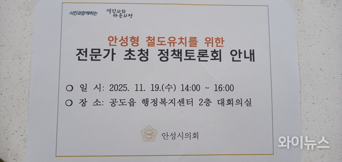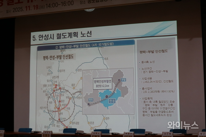 [와이뉴스] 안성형 철도 유치를 위한 정책토론회가 19일 오후 공도읍 행정복지센터 2층 대회의실에서 안성시의회 주최로 열렸다. 토론회는 안성시 철도 유치를 위한 합리적 노선 설계와 전략 마련을 목적으로 개최됐다. 토론회의 전체적 논의를 한 마디로 정의하자면 “아직 준비할 요소는 많지만, 그래도 희망을 놓지는 말자”로 정리될 수 있을 듯하다.