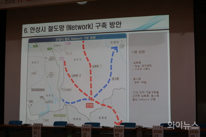 토론회 좌장은 최호섭 안성시의회 운영위원장이 맡았으며 강혁수 철도기술사(주식회사 동명기술공단종합건축사사무소 부사장)가 ‘안성형 철도 계획 현황 및 안성형 철도 노선 제시’를 주제로 발제했다. 토론은 박해신 철도전문가(공학박사)가 ‘안성 철도 구축 전 선행돼야 할 요소’, 이관실 안성시의원이 ‘철도 유치를 통한 안성의 균형 발전과 성장의 기반 구축’, 황준문 신명이엔씨 센터장이 ‘안성시 철도망 구축의 현실과 대안: 평택부발선 예타 이후의 계획’, 김은배 안성시민 대표가 ‘안성시 관련 철도 계획안의 실제 배경과 안성에 꼭 맞는 안성맞춤 철도’, 왕규용 안성시 교통정책과장이 ‘안성시 철도 유치 추진’ 등을 주제로 참여했다.