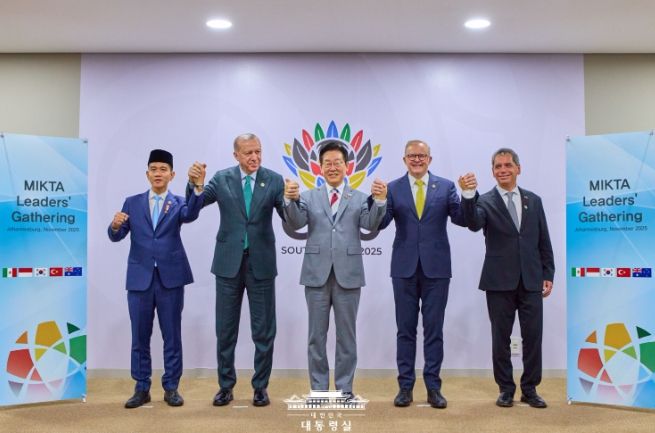 [와이뉴스] 주요 20개국(G20) 정상회의 참석을 위해 남아프리카공화국을 방문한 이재명 대통령은22일(현지시간) 오후 우리나라, 멕시코, 인도네시아, 튀르키예, 호주 5개국으로 구성된 믹타(MIKTA) 회원국 정상들과 회동했다.