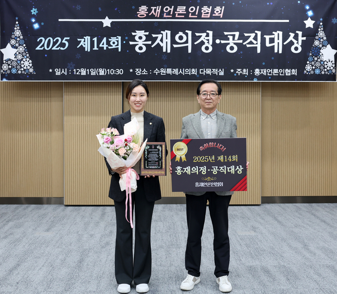 [와이뉴스] 오산시의회 조미선 의원이 1일 수원시의회 다목적실에서 열린‘제14회 홍재 의정·공직대상’ 시상식에서 기초의회 부문 대상을 수상했다.