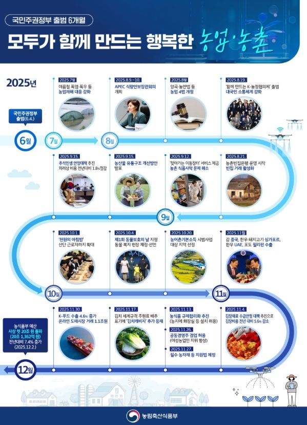 [와이뉴스] 농림축산식품부는 새 정부 출범 후 약 6개월동안 정책의 연속성과 과감한 혁신 기조 하에서 현장에서 체감할 수 있는 변화를 이끌어 내는 동시에, 만성적 쌀 공급 과잉, 농촌 고령화 등 농업·농촌의 구조적 문제 해결과 희망을 실현하는 농업·농촌을 만들기 위해 전력을 다하고 있다.