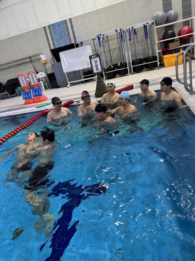주요 훈련 내용으로는 ▲수상인명구조장비 사용법 ▲기초영법·접근영법·구조영법 등 수심 적응 훈련 ▲익수자 접근 및 확보 절차 ▲구조대상자 응급처치 및 사후 관리 등이 포함됐다.