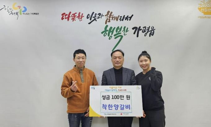 [와이뉴스] 가평군 가평읍 경춘로 소재 착한양갈비는 지난 19일 행정복지센터를 방문해 이웃돕기 성금 100만 원을 기탁했다.