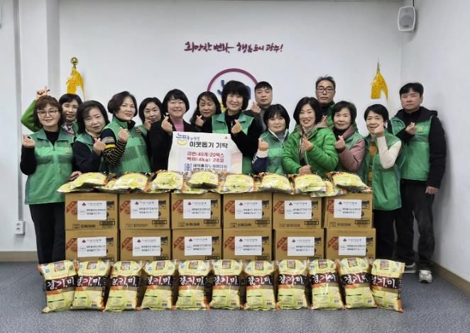 이날 기탁된 물품은 새마을회 회원들이 탄소중립 실천의 하나로 진행한 헌 옷 수거 판매 대금과 회원들의 자발적인 참여로 마련한 것으로 총 120만 원 상당의 백미와 라면이다. 기탁 물품은 겨울철 식생활에 어려움을 겪는 지역 내 취약계층에게 전달될 예정이다.
