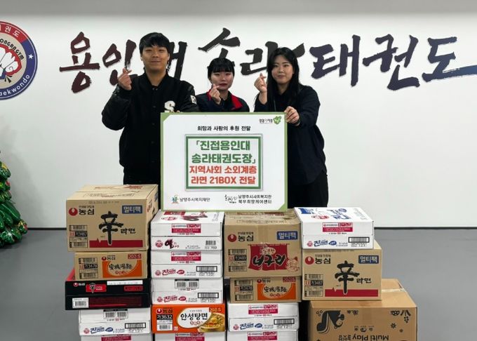 [와이뉴스] 남양주시 지난 29일 진접읍 소재 진접용인대송라태권도장이 라면 21박스를 북부희망케어센터에 전달했다고 30일 밝혔다.