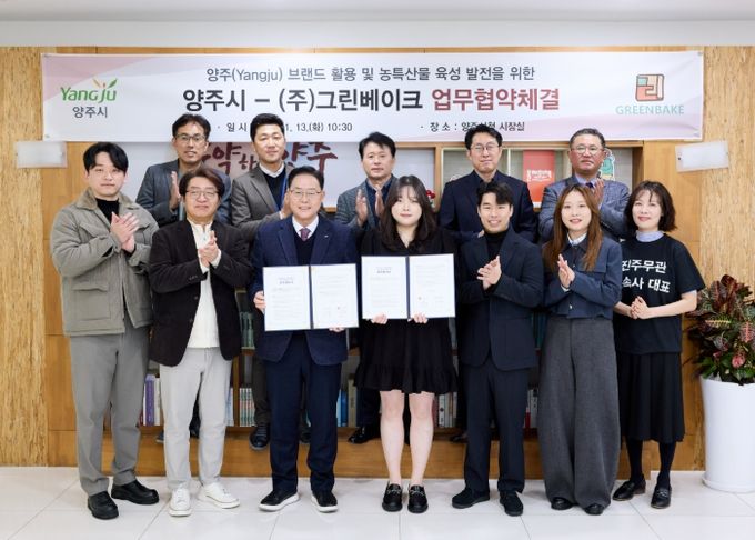 [와이뉴스] 양주시는 13일 오전 ㈜그린베이크와 ‘양주(Yangju) 브랜드 활용 및 농특산물 육성 발전을 위한 업무협약(MOU)’을 체결했다고 밝혔다.