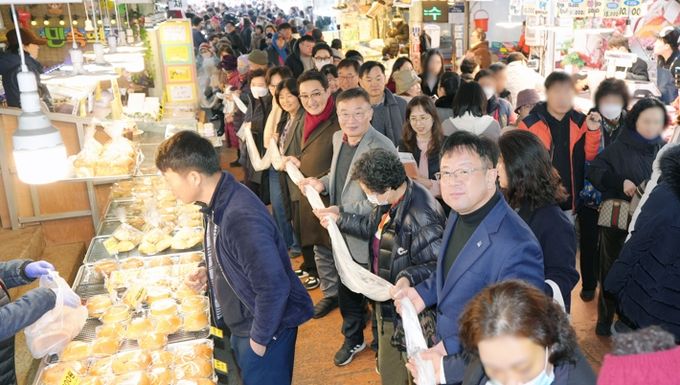 [와이뉴스] 수원 못골종합시장이 새해를 맞아 16일 전통시장 상인과 시민이 함께하는 ‘가래떡 나눔 행사’를 열었다.