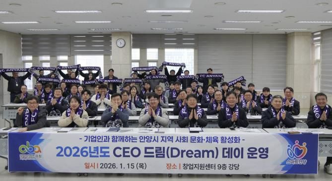 [와이뉴스] 안양산업진흥원은 15일 오후 3시30분 안양창업지원센터 강당에서 관내 기업인 150여 명을 대상으로 지역사회 문화·체육 활성화를 위한 ‘2026 CEO 드림(Dream) 데이’를 열었다.