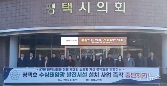 또한 “평택시의회 의원 일동은 평택호를 지켜야 할 책무를 가지고 졸속적이고 일방적으로 추진되고 있는 평택호 수상태양광 발전시설 설치 사업을 즉각 중단할 것 요구한다”고 밝혔다.
