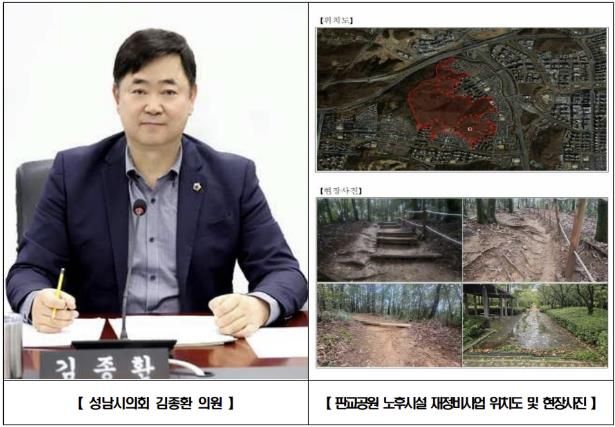 [와이뉴스] 성남시의회 국민의힘 김종환 의원(판교·백현·운중·대장동, 예산결산특별위원장)은 분당구 판교동 판교공원 일원 노후 산책로와 바닥포장 등을 정비하는 재정비공사가 본격 추진됨을 밝혔다.