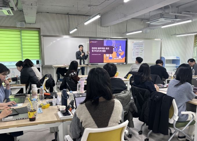 5일 연수의 주요 내용은 ▲과학실험실 안전관리의 실제 ▲안전한 화학약품 관리 및 MSDS 활용 ▲사례로 알아보는 과학실험실 안전 등 학교 현장에서 바로 적용 가능한 실습·사례 중심 프로그램이 운영됐다.