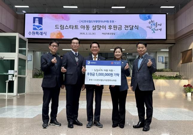 [와이뉴스] (사)한국철도차량엔지니어링이 설을 맞아 “수원시 드림스타트 아동을 위해 사용해 달라”며 후원금 500만 원을 기부했다.