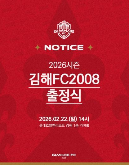 [와이뉴스] K리그2 무대에 첫 도전장을 내미는 김해FC2008(이하 김해FC)이 오는 22일 오후 2시, 롯데호텔앤리조트 김해에서 ‘2026시즌 출정식’을 개최한다.