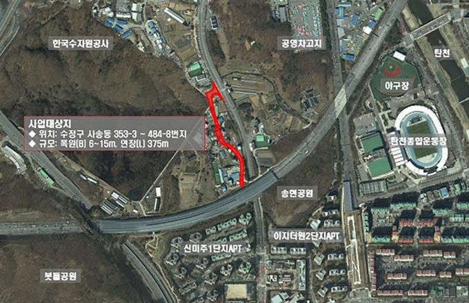 [와이뉴스] 성남시 수정구 사송동 353-3번지~484-8번지 일원에 오는 2030년까지 375m 길이의 도로 개설 사업이 추진된다.