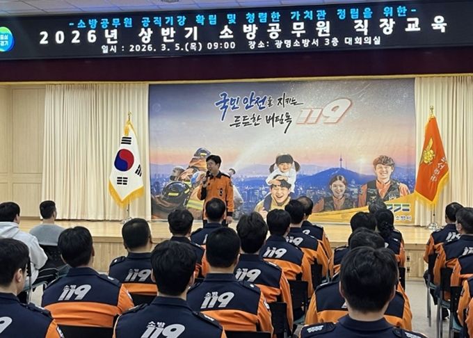 [와이뉴스] 광명소방서는 5일 본서 3층 대회의실에서 전 직원을 대상으로 2026년 상반기 소방공무원 직장교육을 실시했다.